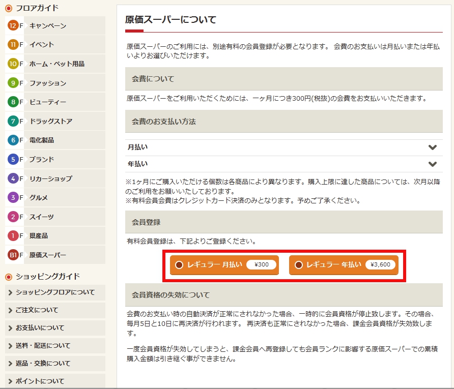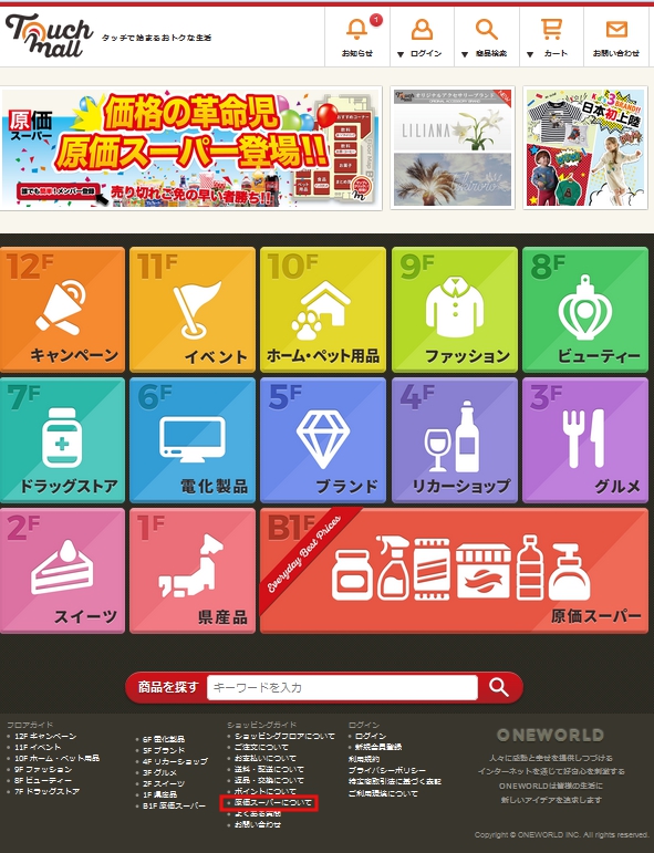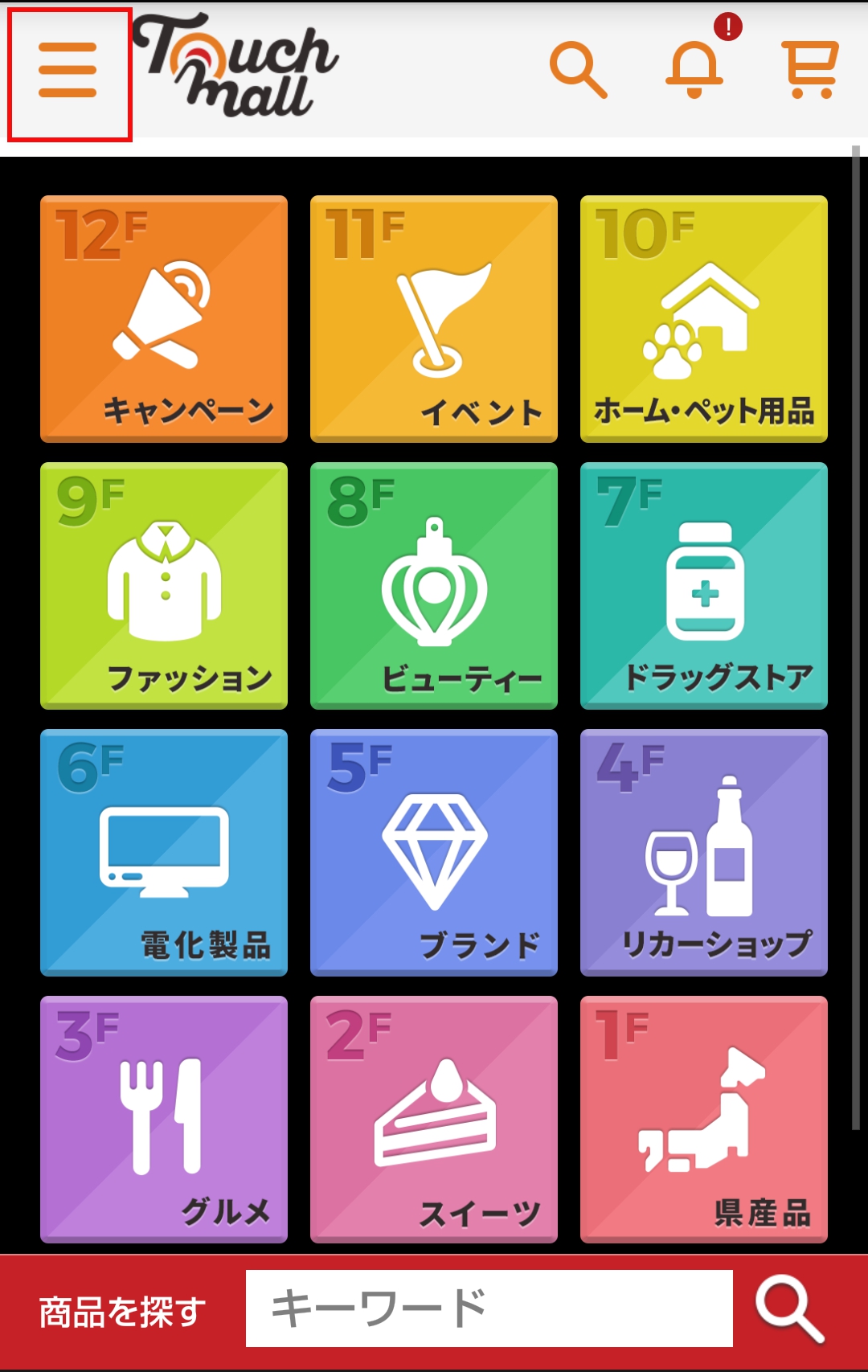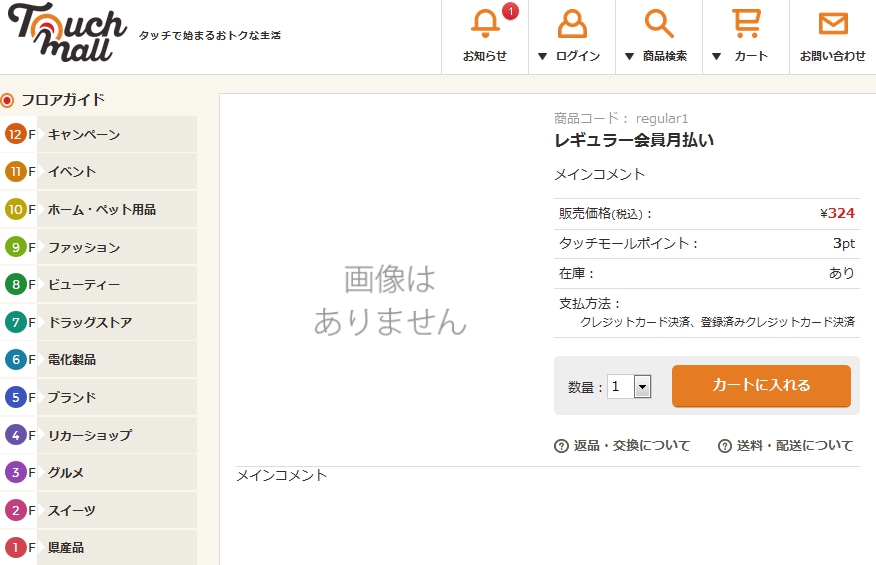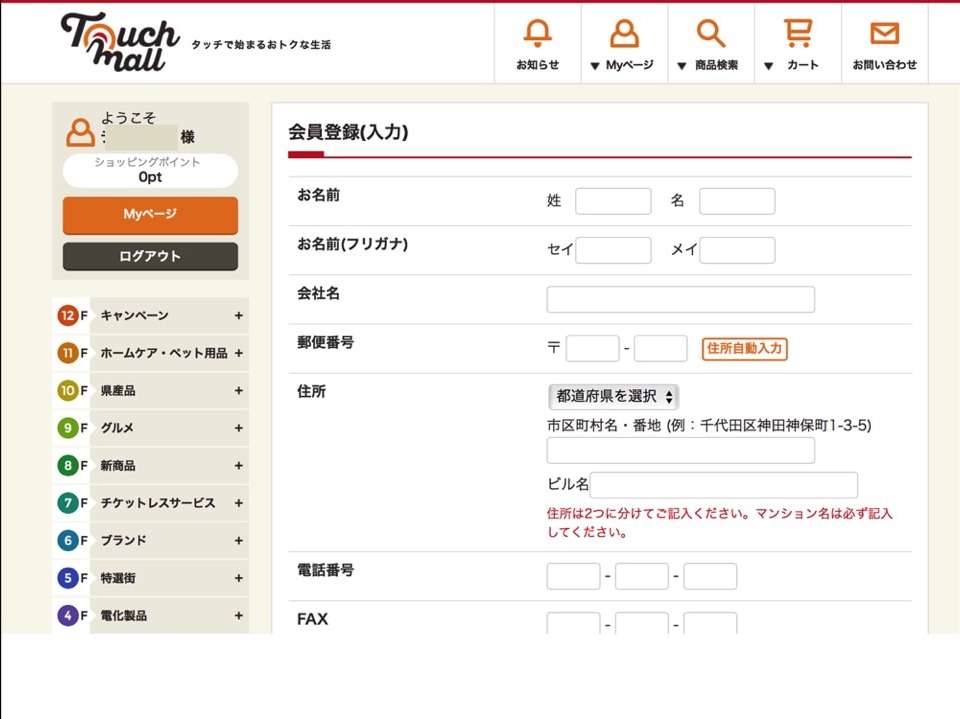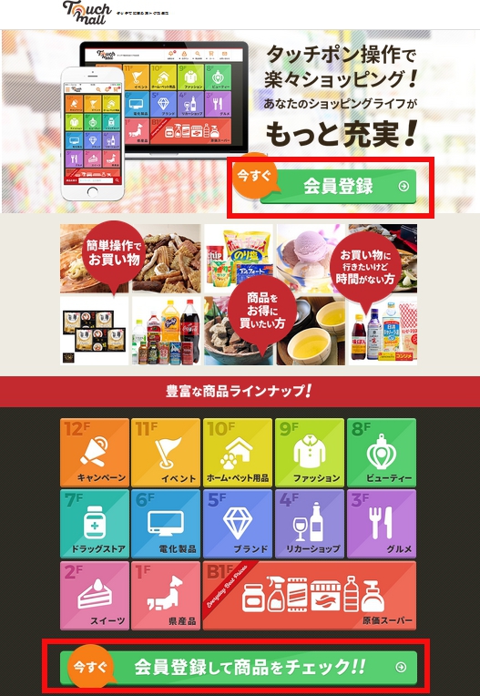 タッチモール内、特に商品閲覧に会員登録が必要な