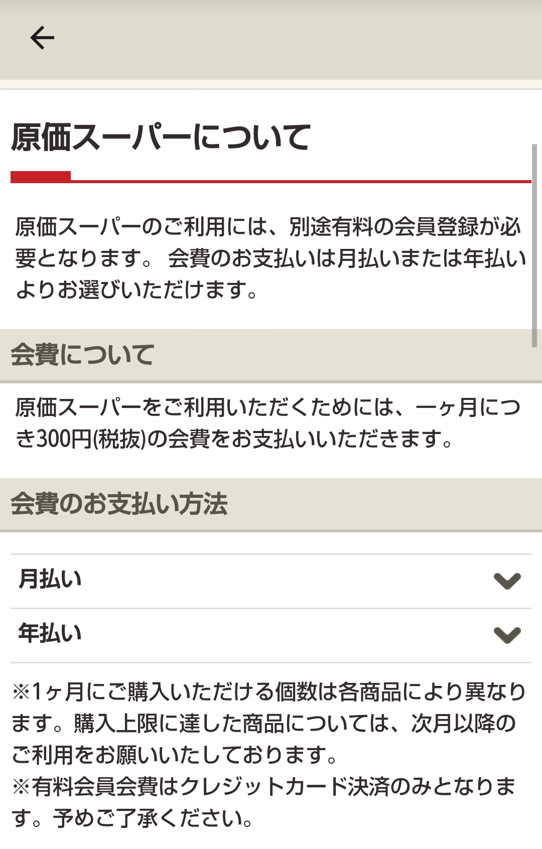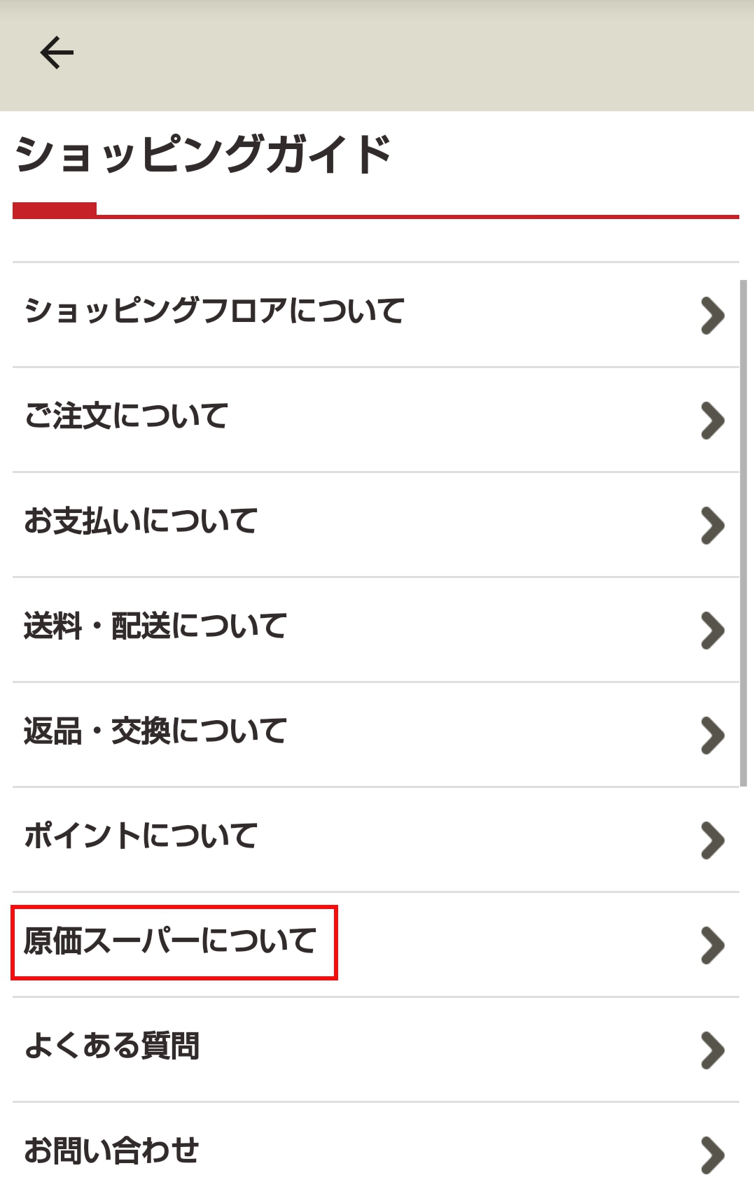 そして、次の画面で赤枠で示した「原価スーパーについて」